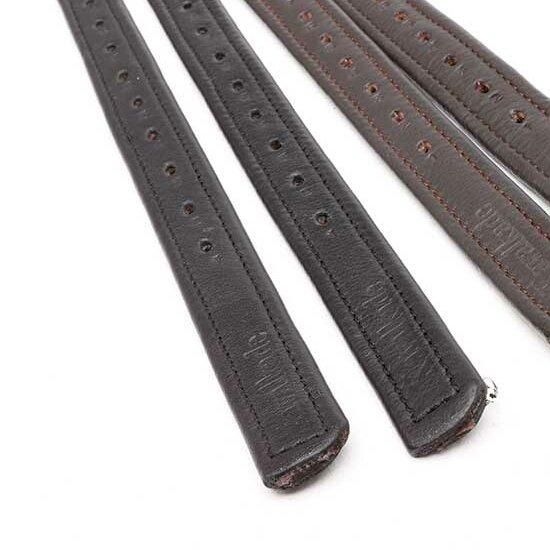 高品質のソフトレザーの丈夫なナイロン芯の入った鐙革です。幅は細身の2.2cm。