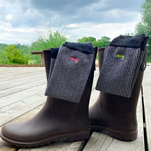 シェブロン柄の靴下には蛍光ピンクで、千鳥格子柄の靴下には蛍光黄色でペネロペのロゴがはいっています。
