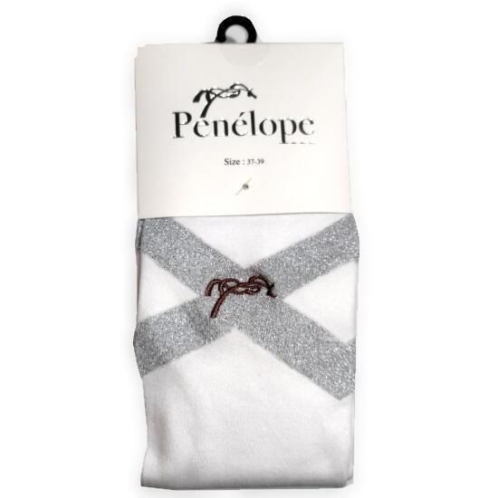 ペネロペのロゴがアクセントになったシルバーのクロスが特徴のライディングソックスです。